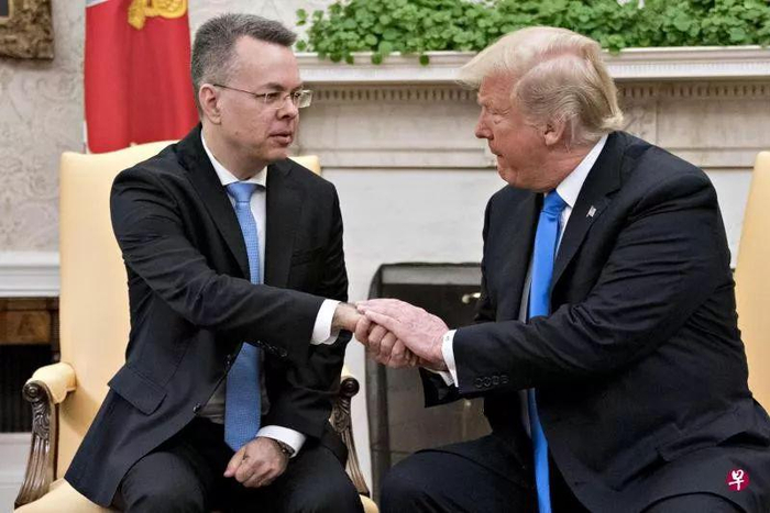 这位牧师最终于2018年10月获释,美国派军机接回,特朗普在白宫接见。