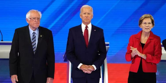 左起:桑德斯、拜登、伊丽莎白·沃伦