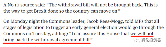 甚至在昨天,下议院领导人Jacob Rees-Mogg还信誓旦旦地作出保证,在大选之前,保守党都不会把《脱欧协议法案》带回议会。