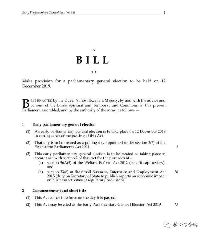 为了发动大选,鲍里斯可谓煞费苦心。考虑到定期议会法案(Fixed-Term Parliament Act)要求至少三分之二议员支持才能触发大选,在工党的阻止下,鲍里斯此前三次试图发动大选未果。但今天,他拿出了新办法,向议会递交了一页纸的《选举法案》,试图通过立法的方式触发大选。