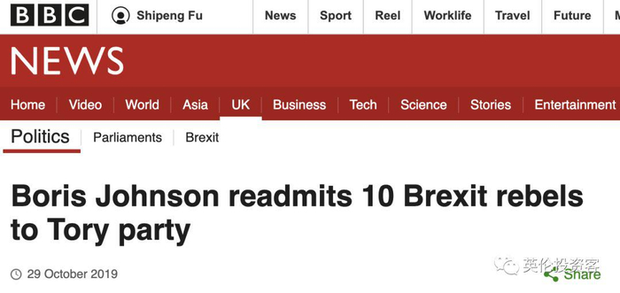 今天,鲍里斯重新召回了被自己开除的前保守党反叛议员,其中10人已经明确表态回归,愿为保守党出战大选。