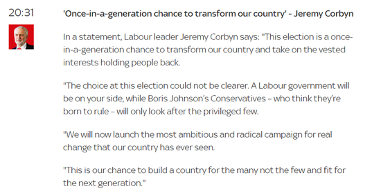 决定大选后,科尔宾发言: