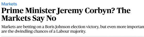 图:太阳报有媒体说,科尔宾当首相,不好意思,市场反对!
