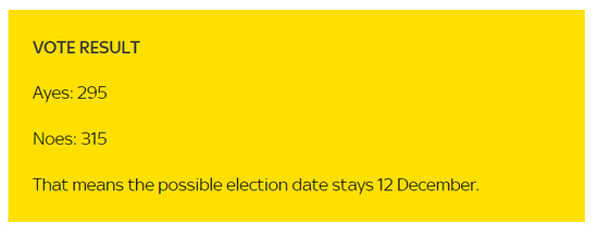 一个是就杰里米·科宾(Jeremy Corbyn)提出的提早大选修正案进行投票,该修正案,就是打算将选举日期从12月12日更改为12月9日——结果被否。。。