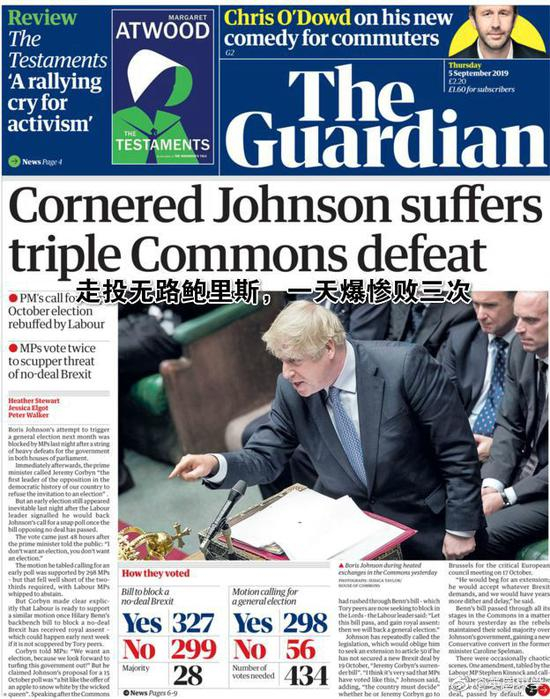 下议院第二天就在一片混乱中通过投票,将下议院控制权从首相抢到了议会手中,议会反对派一下占了上风。鲍里斯,失败。