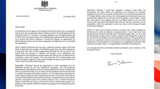 下议院不是逼鲍里斯申请延期吗?鲍里斯马上表面答应,写出了第一封信。