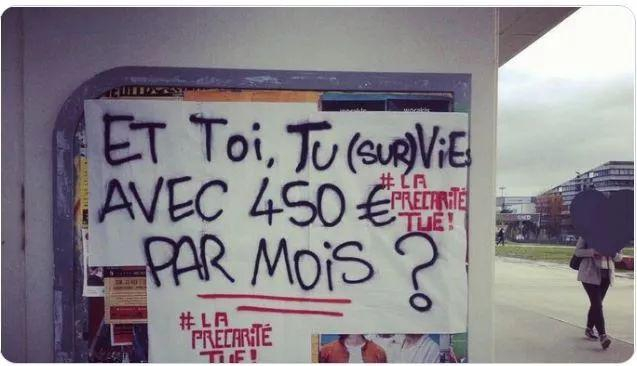 一些大学被贴上“你是否每月仅靠450欧元活?”的海报,以抗议学生贫困现象。(本文配图皆为推特截图)