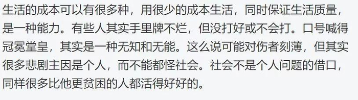 有网友表示,用很少的成本生活,同时保证生活质量,这是一种能力: