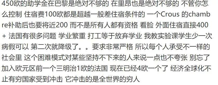 在其他信息中,这名学生还表示,今年他第三次读本科二年级,失去了助学金,“但即便我还有(助学金),每个月450欧元就够活吗?”