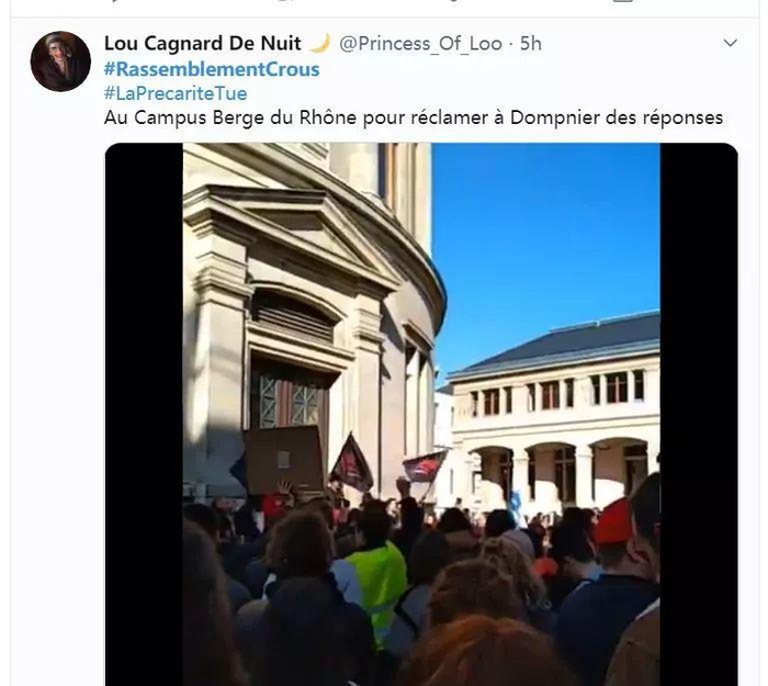 一位参加示威、就读社科专业三年级的女生Sophie以自身经历举例说,她去年生重病,缺席了几门考试导致留级,而CROUS因此中断了她的助学金,她不得不从垃圾箱里找吃的,并且兼职打几份工来付房租。