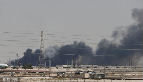 9月14日,沙特阿美的部分设施遇袭后,现场浓烟滚滚 图自视觉中国