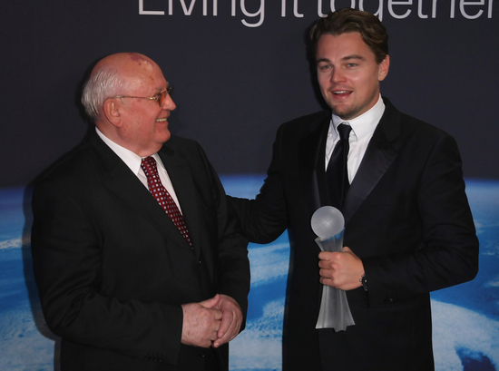 在戈尔巴乔夫的演艺生涯中,他还和奥斯卡影帝“小李子”成了好朋友。在莱昂纳多制片的公益纪录片《第十一个小时》中,戈尔巴乔夫出境讲述了关于人类向自然界索取无度,造成全球气温上升、生态恶化的故事。“小李子”还曾表示想拍摄一部以戈尔巴乔夫为主角的传记电影,但此后没有了下文。