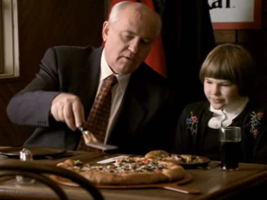 晚年为了生计,戈尔巴乔夫还四处接拍广告。1997年,戈尔巴乔夫带着外孙女,为必胜客拍了一条商业广告,赚到16万美元。但由于大赞美国快餐引起争议,该广告未能在俄罗斯播出。
