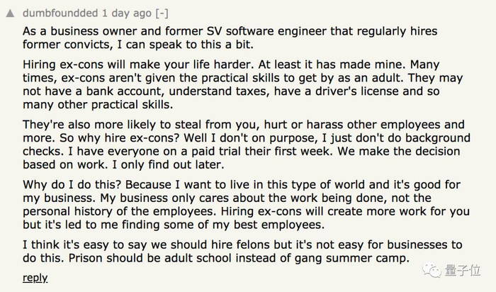 Hacker News上也有曾经雇佣过刑满释放人员的老板大吐苦水。