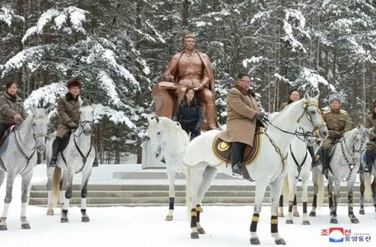 12月4日,朝媒大篇幅报道了金帅再次骑马上白头山的消息。与10月中旬的那一次开启骏马行军路相比,这一次的内容更丰富。
