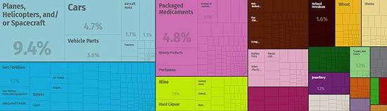 法国出口中飞机为最大单一出口品类。