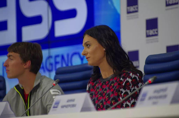 ●2015年11月俄罗斯因涉嫌“系统性”使用兴奋剂遭国际田联全面禁赛,撑杆跳女皇伊辛巴耶娃出席发布会答记者问 / IC Photo