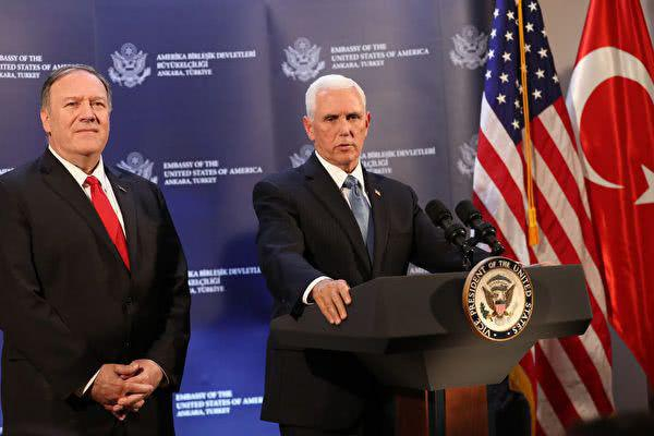 10月17日,彭斯与蓬佩奥在土耳其安卡拉召开记者会,宣布停火消息