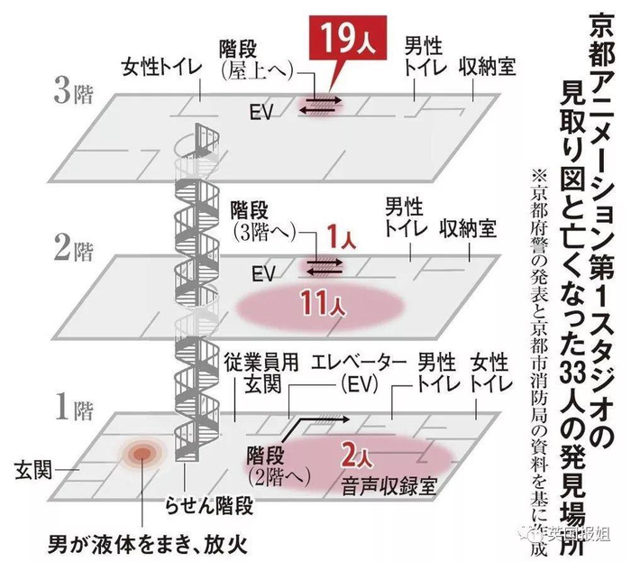 京阿尼的社长八田英明当时并不在楼内。10:30,有人打电话给他说大楼着火了,他当时还以为是有人不小心点燃了纸篓子,并没有当一回事儿。