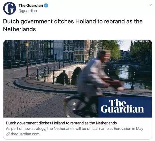 自2020年1月起,荷兰将不再使用荷兰(Holland),改用正式国名尼德兰(Netherlands)。据报道,这是荷兰政府重塑国家形象计划的一部分,预计耗资22万美元。