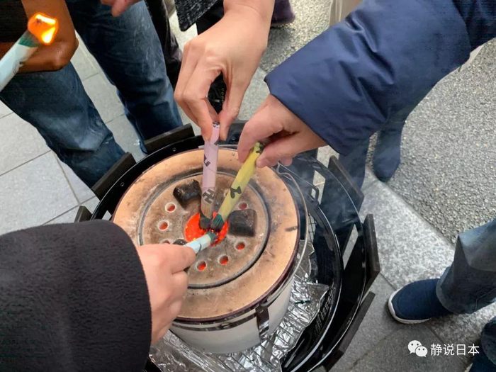 整个初诣的形式,一般都是在佛祖菩萨或神灵前许愿,然后去抽签、去撞钟,然后去求一个护身符。日本的护身符品种繁多,功能各异。开公司做生意的,求“商卖兴隆”符。怀孕的,求“安产”符。开车的,求“交通安全”符。要升学的,求“合格”符。没啥目的的,也可以求一个“家人安康”符。初诣期间,寺院与神社附近的店家,都会临时摆摊,卖各种小吃,如同中国的庙会,煞是热闹。