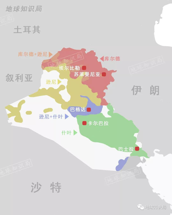 (什叶-阿拉伯、逊尼-阿拉伯、库尔德)
