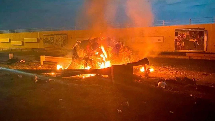 伊朗“圣城旅”下属的Alahad电视台3日晚间公布伊朗高级将领苏莱曼尼被炸瞬间的影像。巴格达机场监控录像中,一枚火箭弹击中了停放在机场的一排汽车。