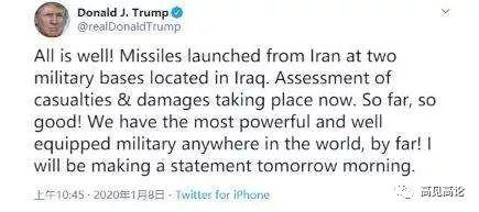 松口气!特朗普发表讲话没向伊朗宣战,战争打不起来!