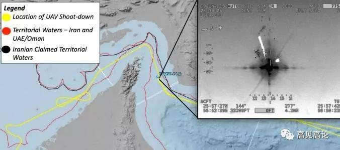 几天后,伊朗在霍尔木兹海峡击落了一架美国海军无人机。美国军方官员称之为是伊朗在国际空域的“无端攻击”,而伊朗官员则声称这架无人机“侵犯”了伊朗领空。今年7月,伊朗在霍尔木兹海峡扣押了一艘悬挂英国国旗的油轮,并短暂扣留了另一艘。
