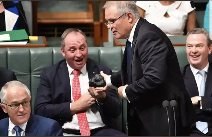 2017年,但是还是财政部长的莫里森在议会作关于能源政策的发言时还特地拿出一块煤说,‘这是煤,不要害怕它,不要恐慌,它不会伤害你。’