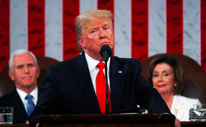 当地时间2月4日晚上9点(北京时间5日上午10点),美国总统特朗普在国会发表2020年国情咨文,主题为“伟大美国回归”,聚焦其总统任内成就。