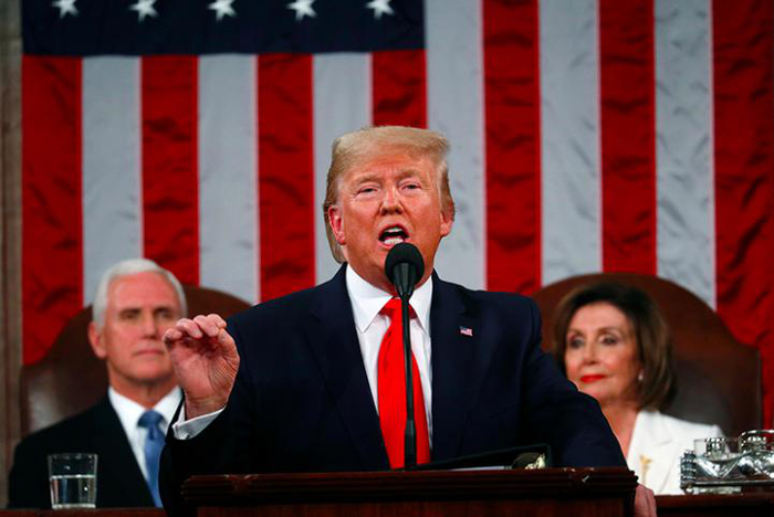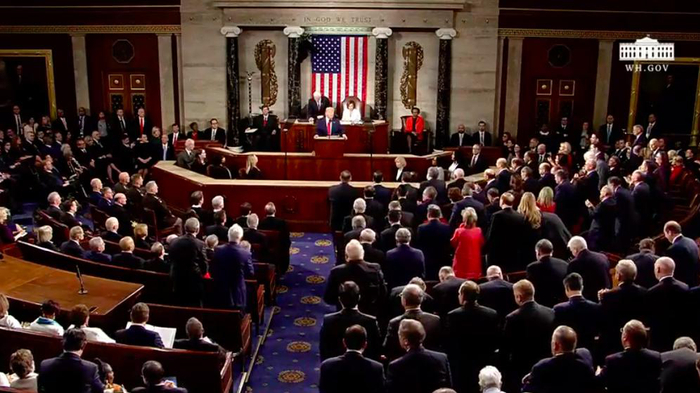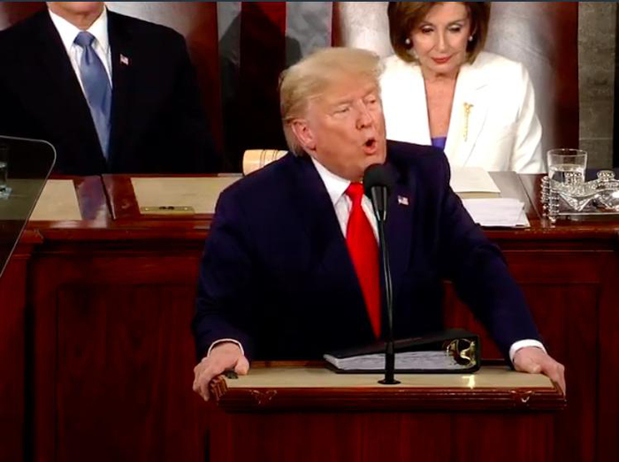 以下为特朗普国情咨文全程重要情节回顾: