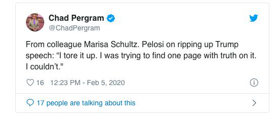 特朗普发表国情咨文 佩洛西当场撕了讲稿