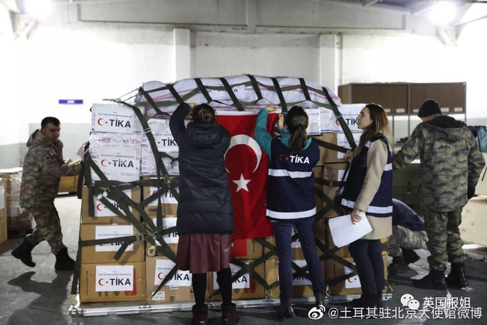 土耳其捐献了1000套防化服,93500个过滤口罩、1000套一次性防护服。