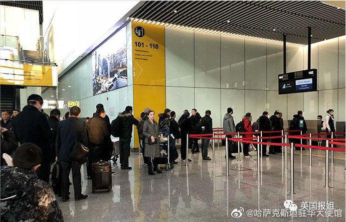 2月10日,一架哈萨克斯坦飞机飞往北京,免费运送被迫滞留的43名中国公民回国。
