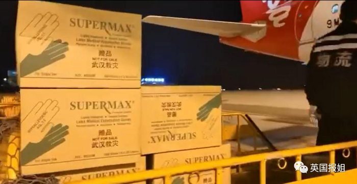 医用口罩、手套,直接从吉隆坡飞抵武汉。