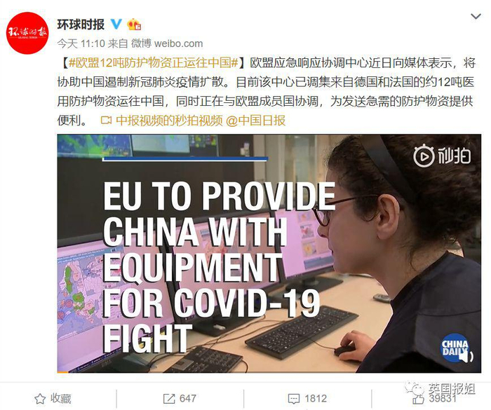 德国、法国也通过欧盟,调集了12吨医用物资,运往中国。