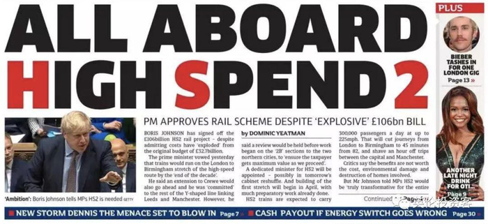 而连接伯明翰、曼彻斯特和利兹的高铁第二阶段将被纳入为北部复兴计划(Northern Regeneration Scheme)的一部分,具体细节将于3月11日和新预算案一起公布。对于重启HS2,鲍里斯承认这是一个“艰难和具争议的决定”,但他同时坚称,兴建高铁将为英国所有地区带来繁荣。