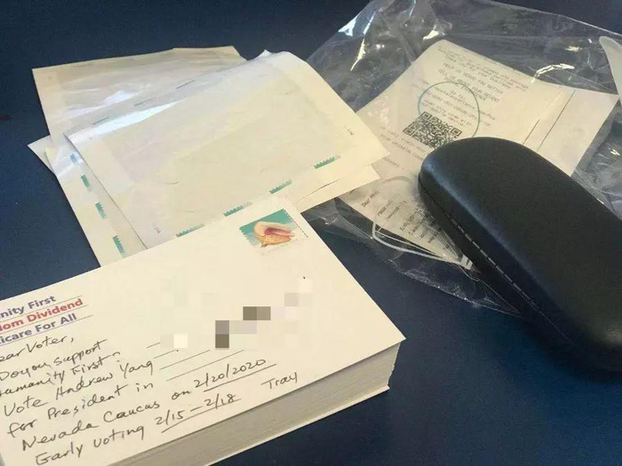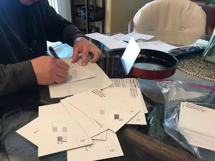 直到杨安泽宣布退选的当天杨帮们还在手写明信片,准备发往内华达州的选民家里。(图片由凌提供)