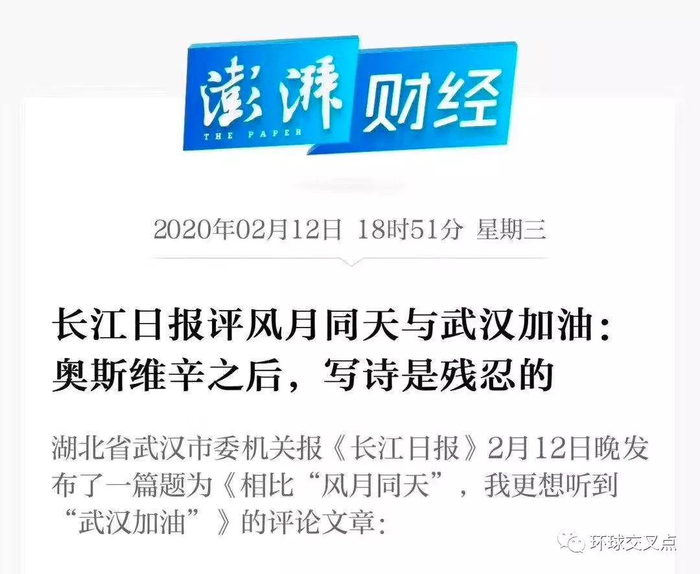 昨天,《长江日报》发了篇评论,引发热议。除了不合时宜地比较“武汉加油”与“风月同天”,结尾处的一句引用,更引来众多批判。“奥斯维辛之后,写诗是残忍的。”