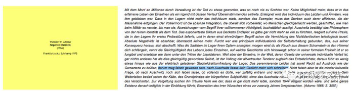“darum mag falsch gewesen sein, nach Auschwitz liesse kein Gedicht mehr sich schreiben。”