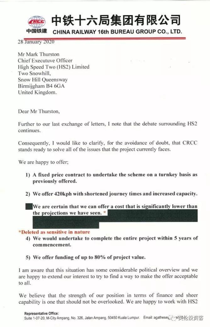 中铁十六局写给英国高铁公司的信简单概括中铁在信中提到的具体信息,主要有以下5点重点内容:
