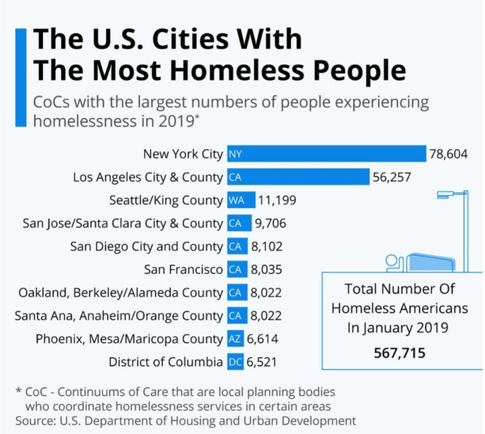 想必去过旧金山,洛杉矶等美国大城市的朋友们都会被满街的流浪汉所震惊,他们还不像电影中的一家人那样还有半地下室的房子住,而是只能睡在大街上,条件好一些的可以住收容所。