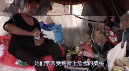 住在这个停车场的人都和她一样,以车为家,白天开车当司机或出去打工,晚上就在自己的车里过夜。有车还是好的,很多流浪者住在破旧的帐篷里,片中的一位女性流浪者非常担心自己的安危,因为她的帐篷甚至没有一个门,住所非常暗,在半夜已经遭受好几次袭击了。