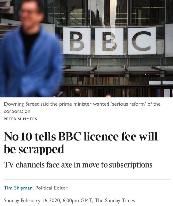 2019年12月,《每日邮报》就报道,一旦保守党胜出,鲍里斯将考虑取消BBC的电视执照费。认为广播机构依靠电视执照进行“变相征税”的经营模式与当下潮流相悖,能持续多久是个问题。