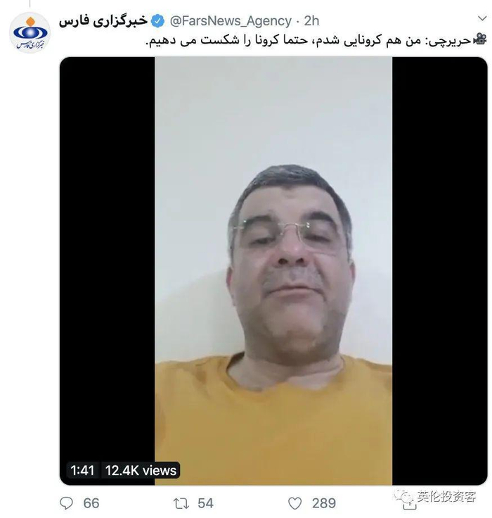 随后,伊朗卫生部副部长亲自录制视频,承认自己在抗疫中感染新冠,并表示会战胜病毒。