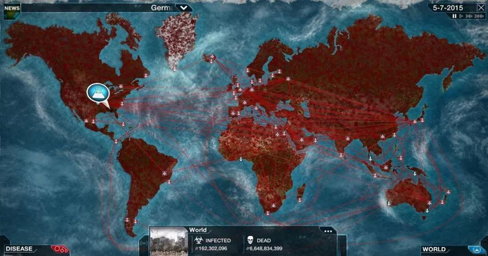 在这个游戏的模拟里,各国政府面临的情况更加糟糕。当病毒的感染人数已经超越了肺结核和艾滋病,人们才意识到问题的严重性。在人们开始研发解药的时候,一切都已经晚了。