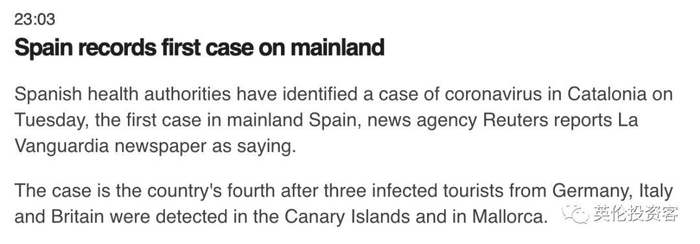 就在刚刚(2月25日),西班牙和瑞士又陆续宣布出现新冠确诊。巴塞罗那报告第一起新冠确诊,患者近期曾去过意大利北部。