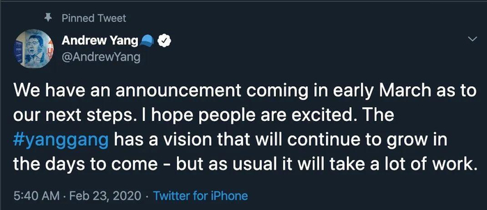 不久前宣布退选的华裔候选人杨安泽究竟何去何从,是杨帮们特别关心又纠结的问题,有铁杆杨帮表示,初选就投他了;也有同样忠诚但希望看清局势的杨帮还紧紧握着手中宝贵的一票,选择最合适的候选人。杨安泽也在自己的推特网上呼应支持者的心声,表示3月初,也就是“超级星期二”的关键阶段,他将有新消息发布。