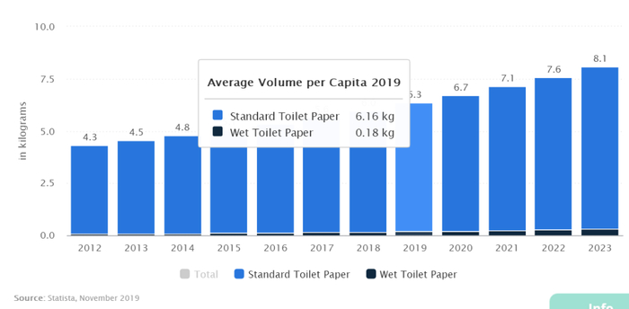 对于疫情中外国人抢卫生纸的热潮,我国民众目瞪口呆,产生了三连疑问:擦屁股比吃饭还重要?真的不先抢口罩吗?还有日本,你们的马桶不是自带清洗功能的吗?别的国家先不谈,单对日本人来说,饿死事小,失节事大。只有卫生纸才能保证基础幸福感。这一点在消耗量上就能体现出来。据统计,日本如今卫生纸用量每年每人约17.4斤,按一斤一箱来算大概每人每年用17箱卫生纸以上,能够和整个欧洲地区比肩。那么,假设疫情持续两三个月,一人扛回去两三箱纸也不算多。